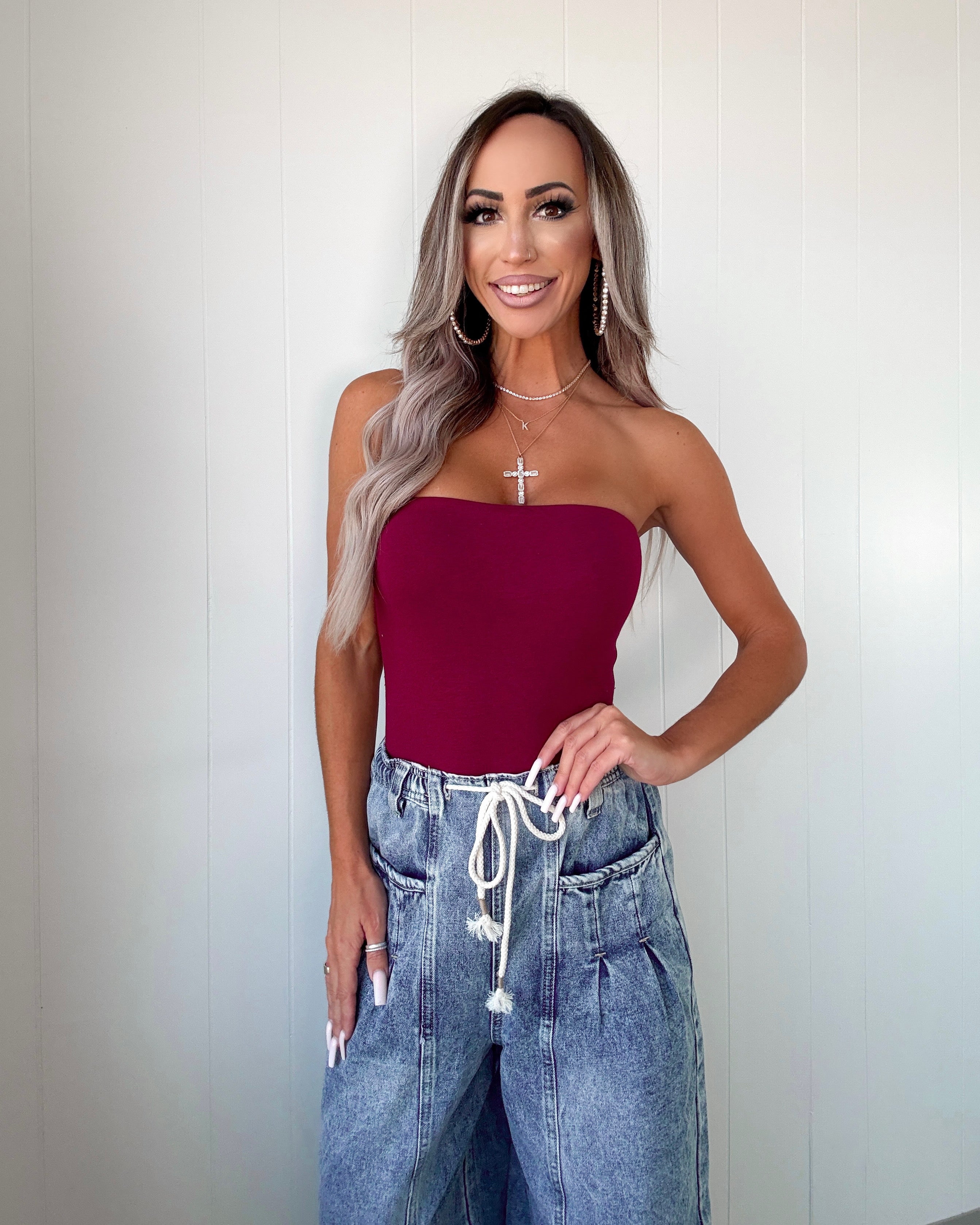 Seamless Charm Tube Top Bodysuit - Burgundy