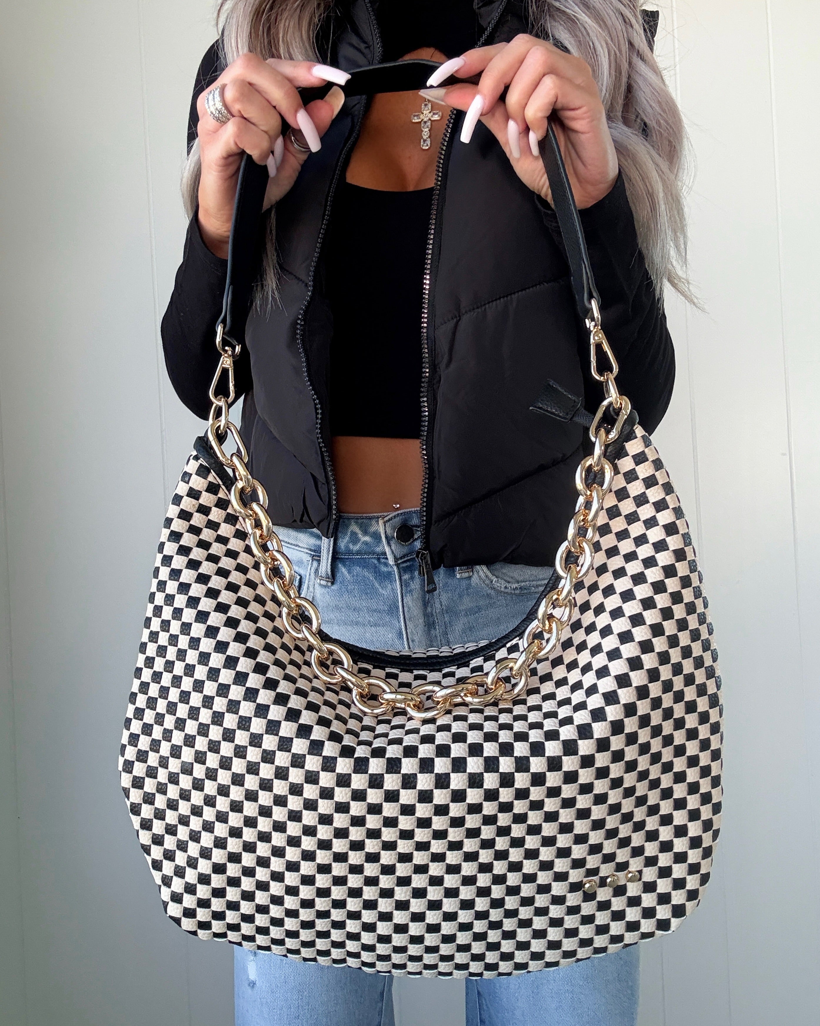 Sienna Slouchy Woven Shoulder Bag - Checkered
