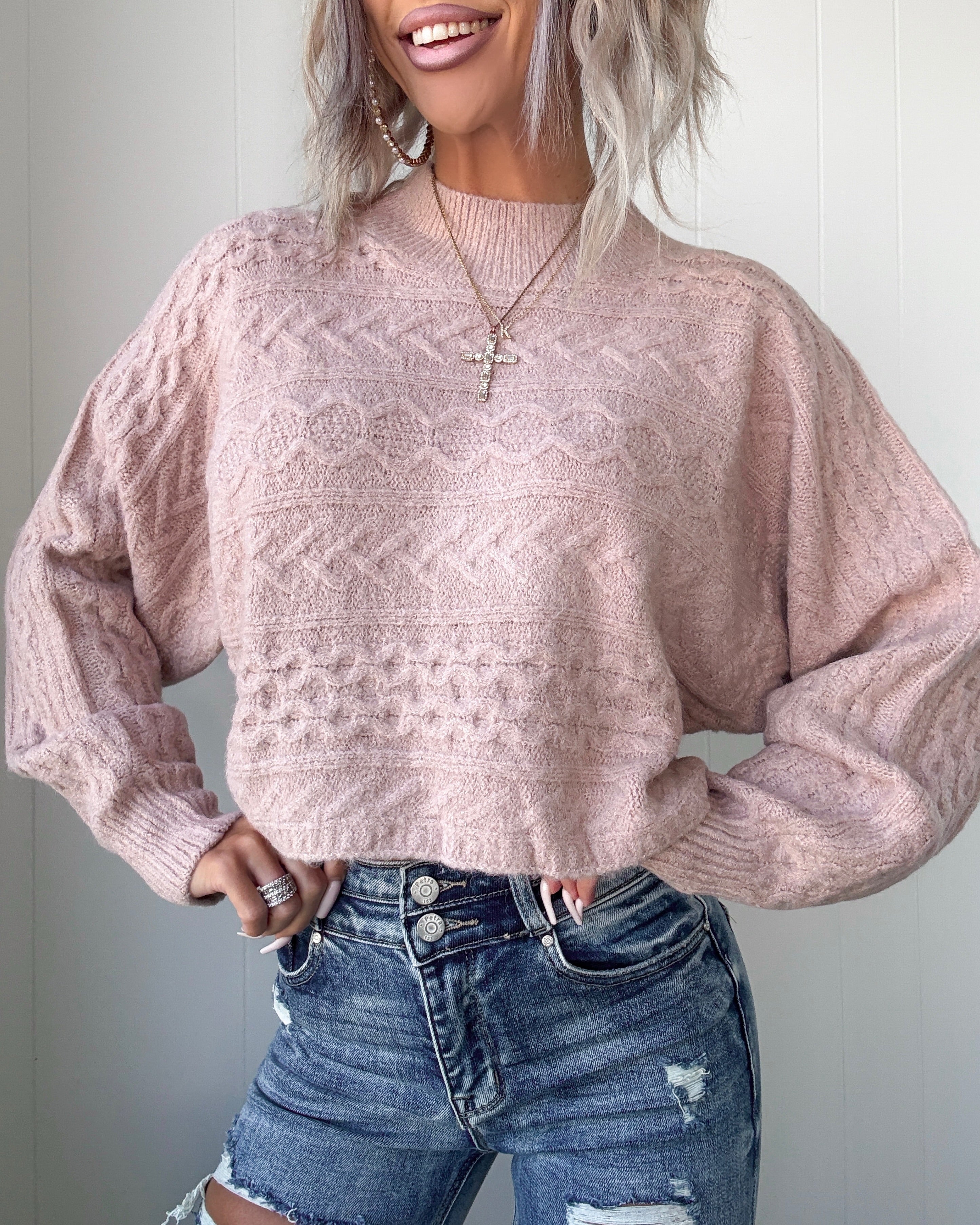 Autumn Rose Cable Knit Cropped Sweater