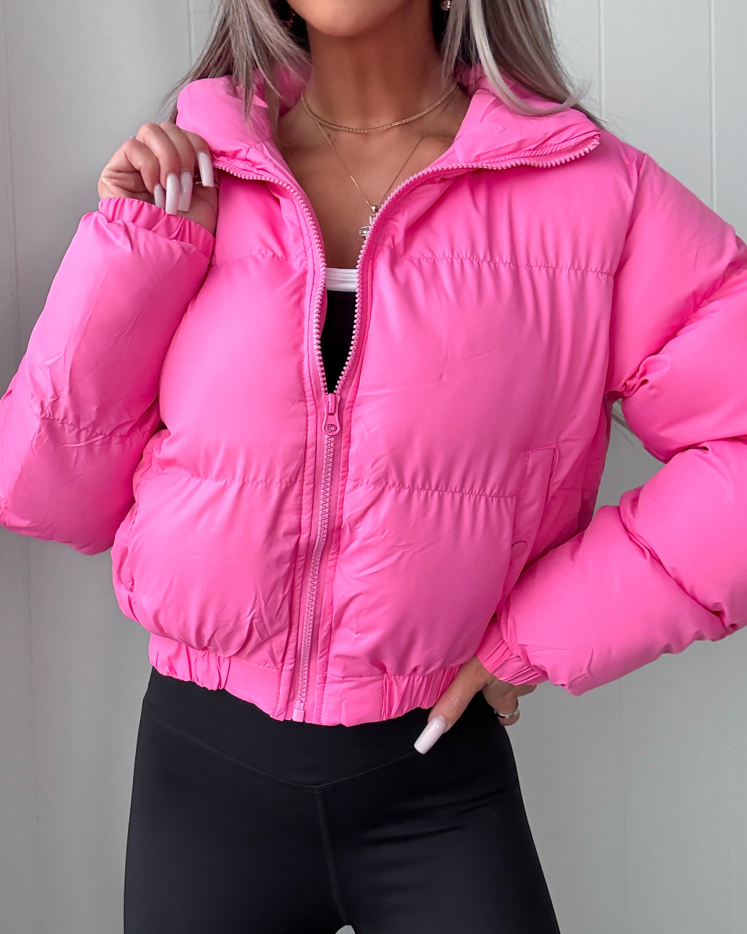Arctic Chic Cropped Puffer Jacket - Barbie Pink