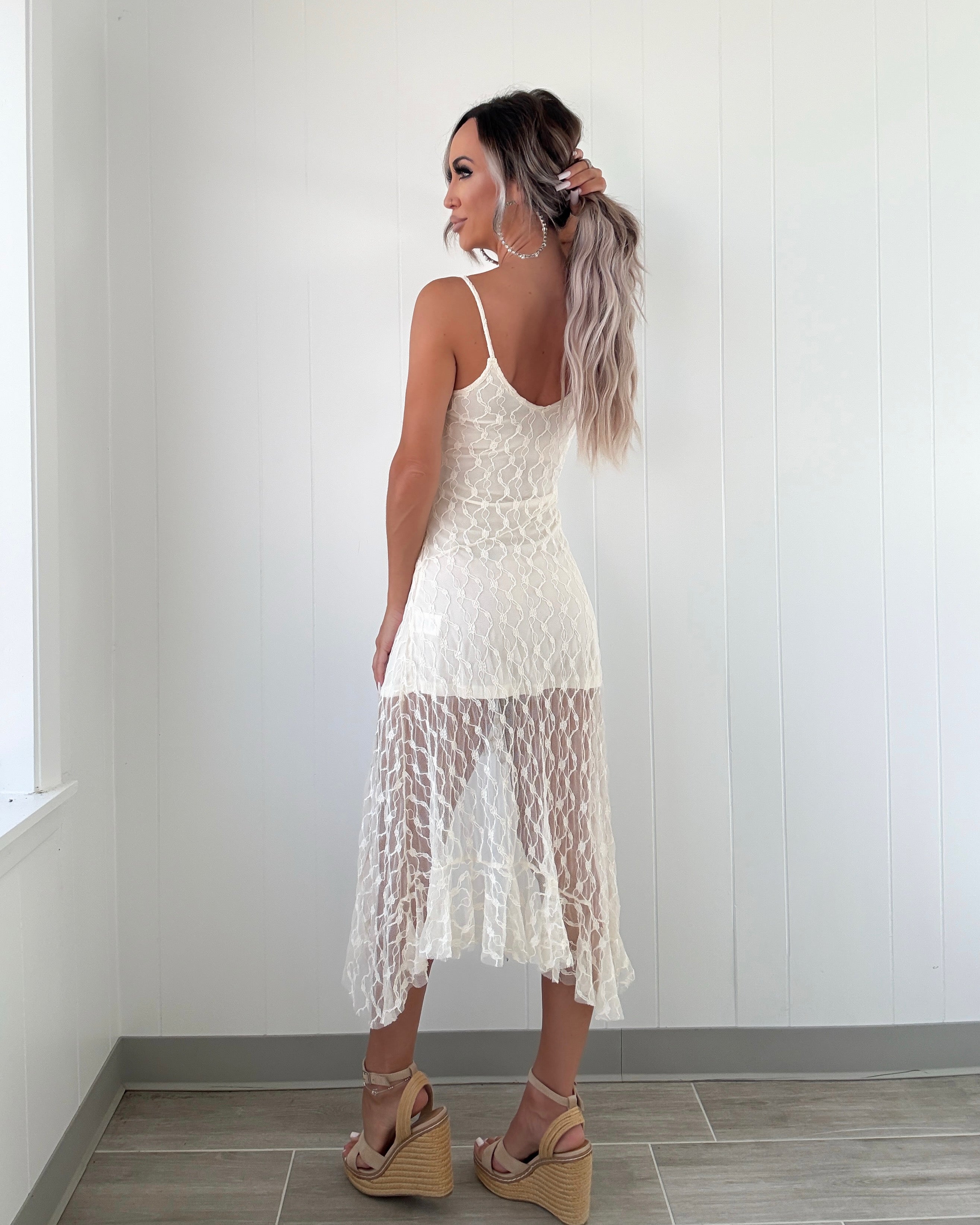 Sweetheart Cutout Denim Midi Dress - Dark Wash