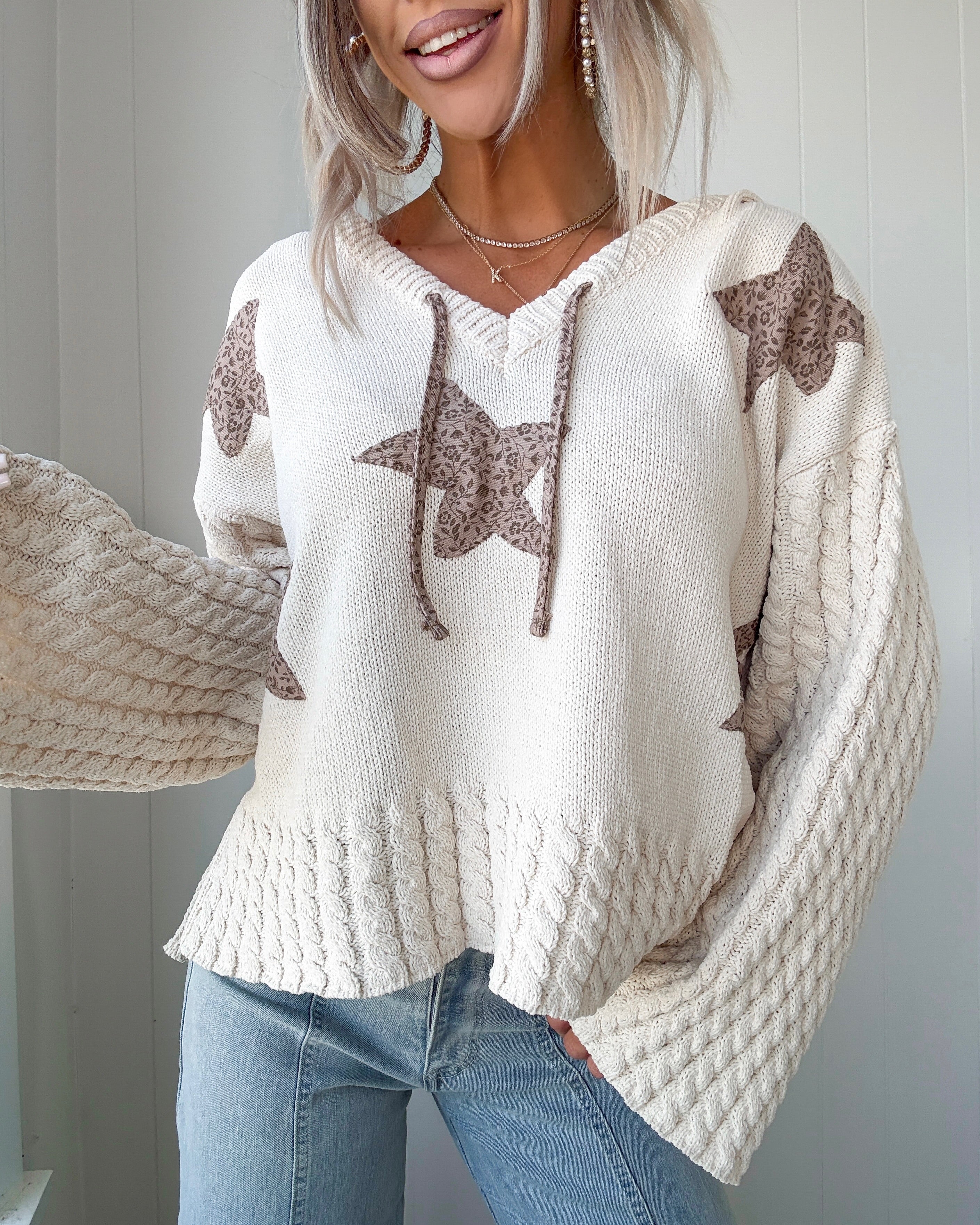 Starlight Snuggle Chenille Hoodie Sweater - Almond