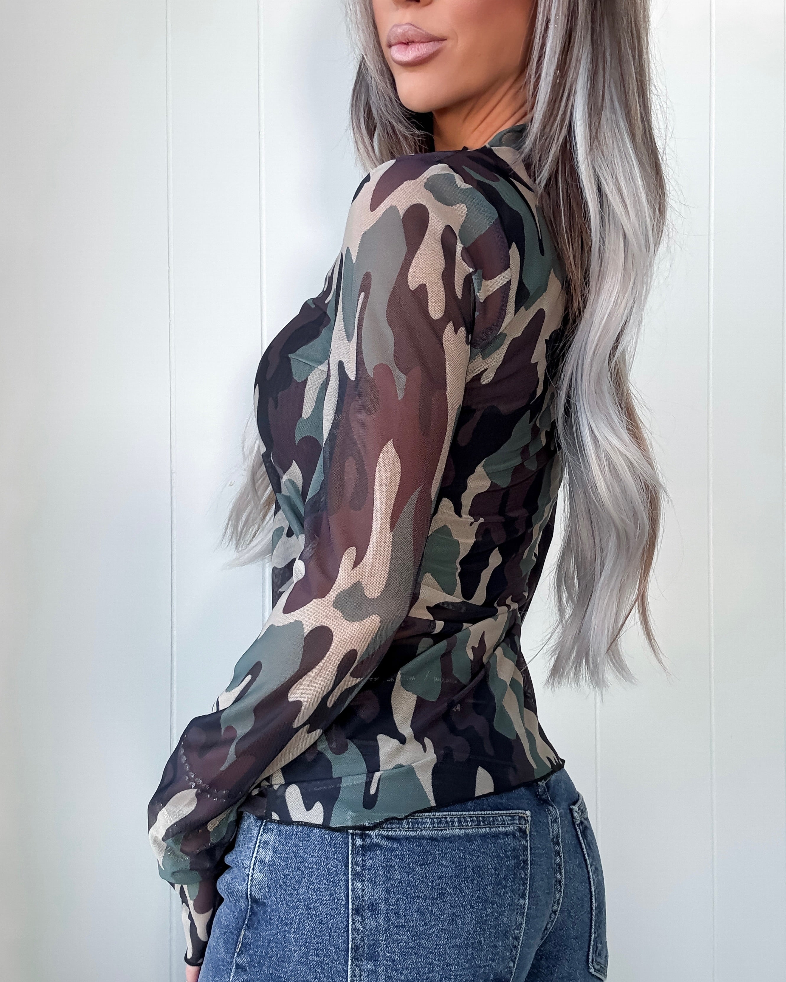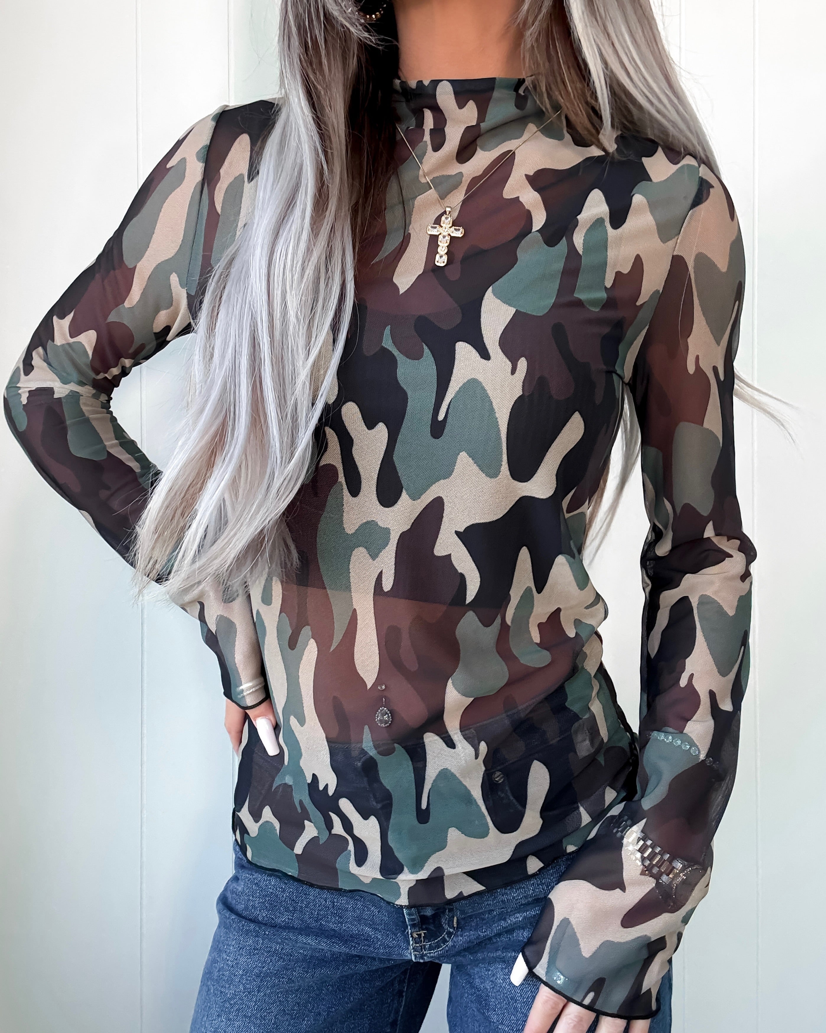 Pretty Trooper Mockneck Sweatshirt - Camo