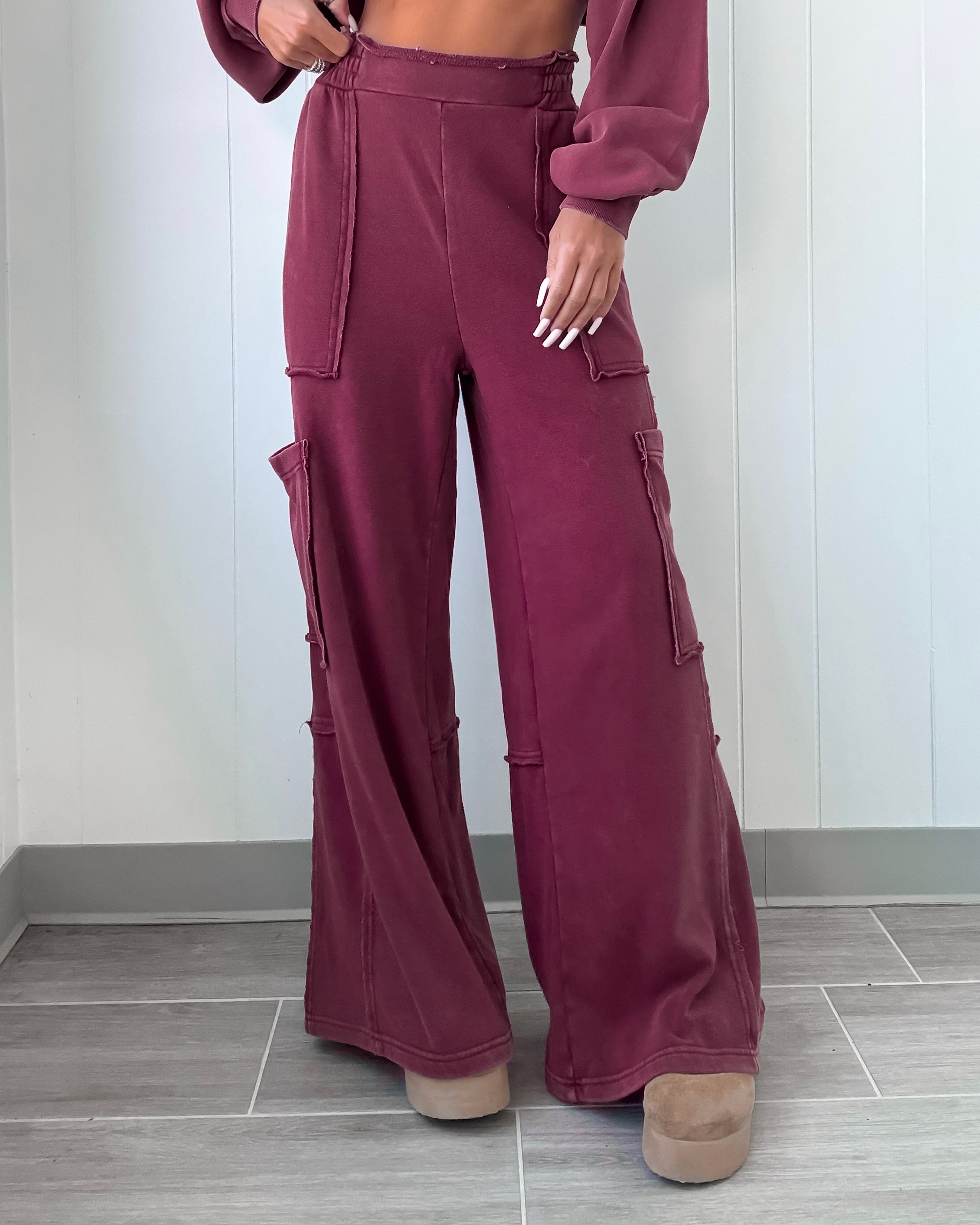 Up Next Raw Hem Wide Leg Pants - Burgundy