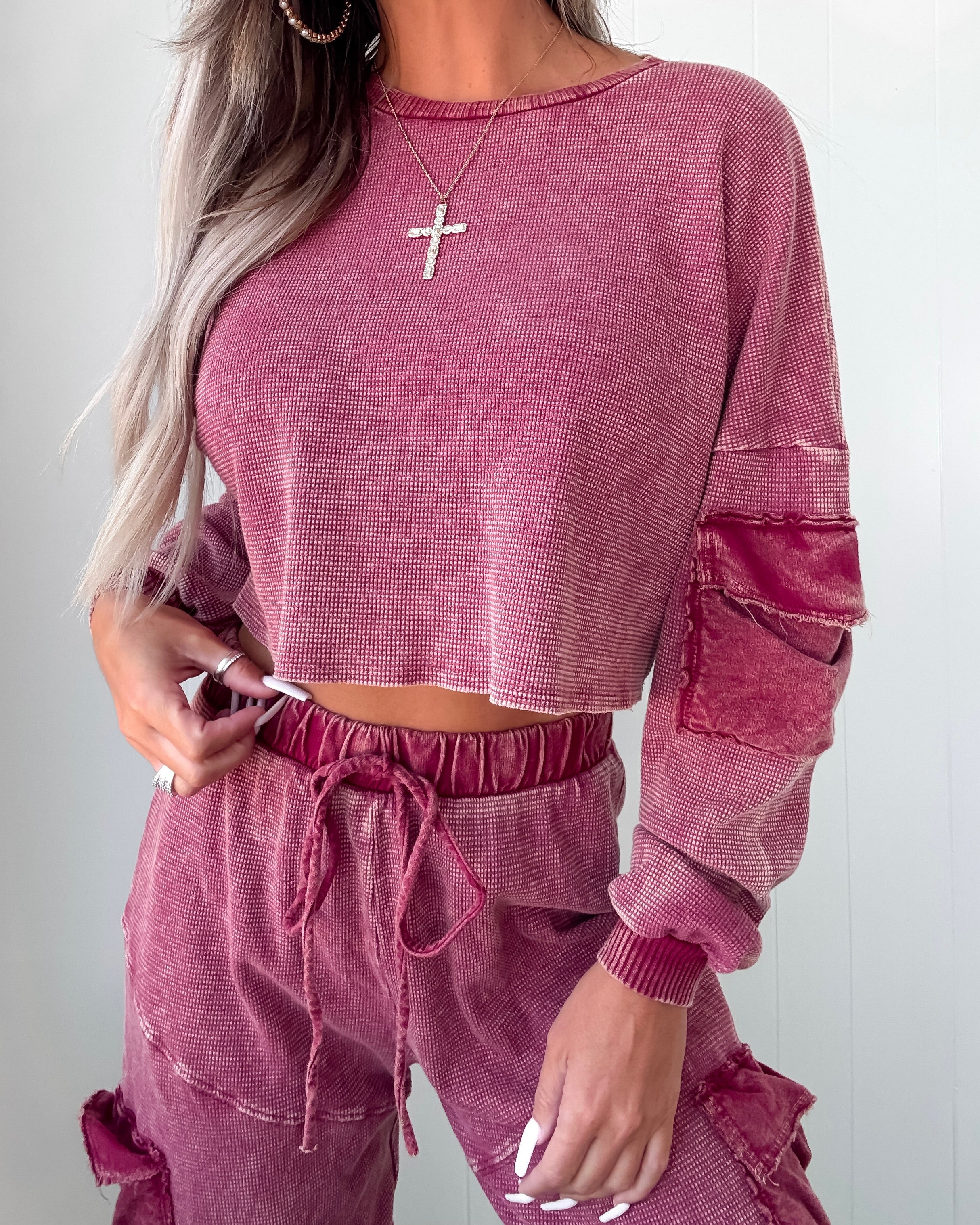 Have Some Fun Knit Detail Wide Leg Pant - Burgundy