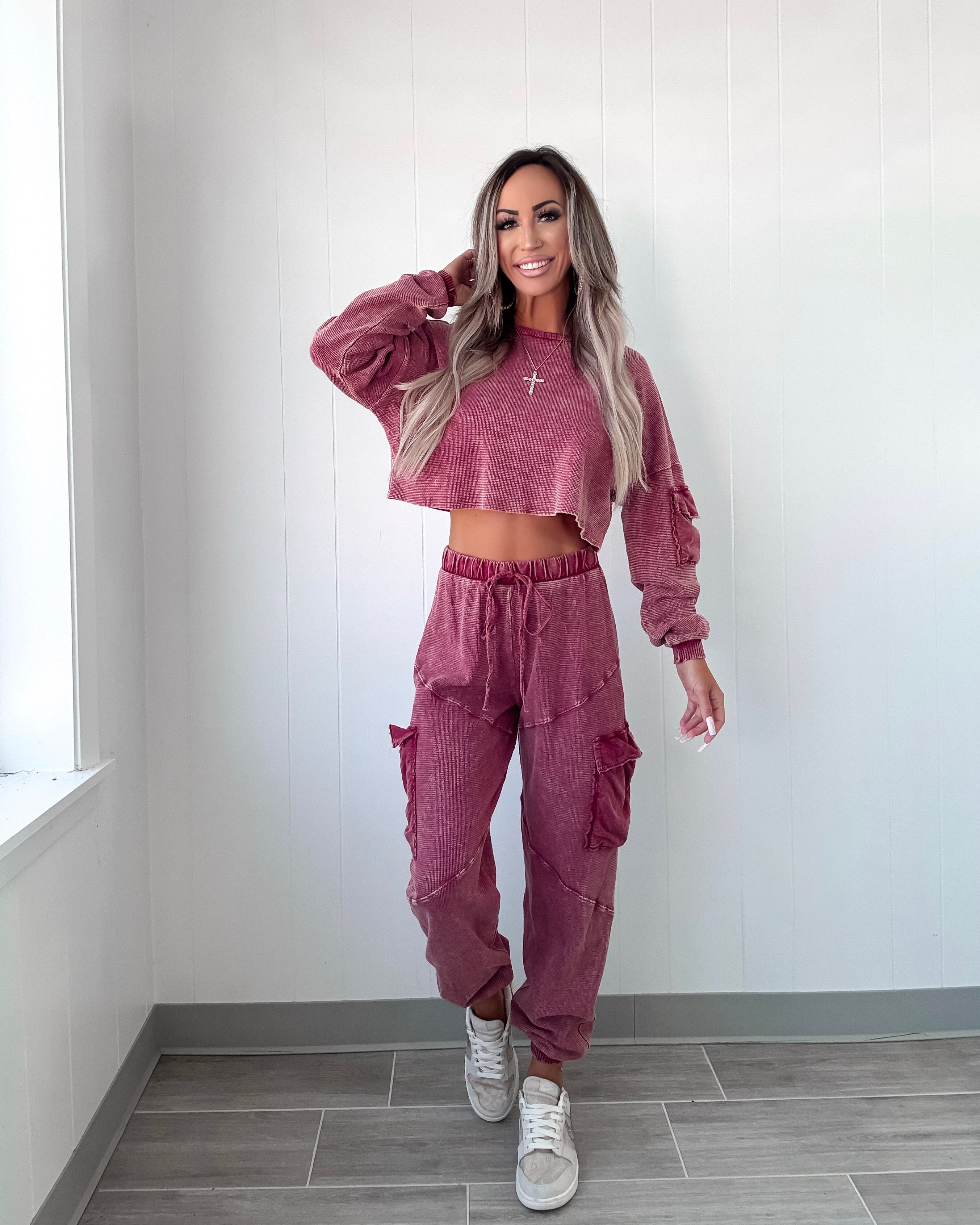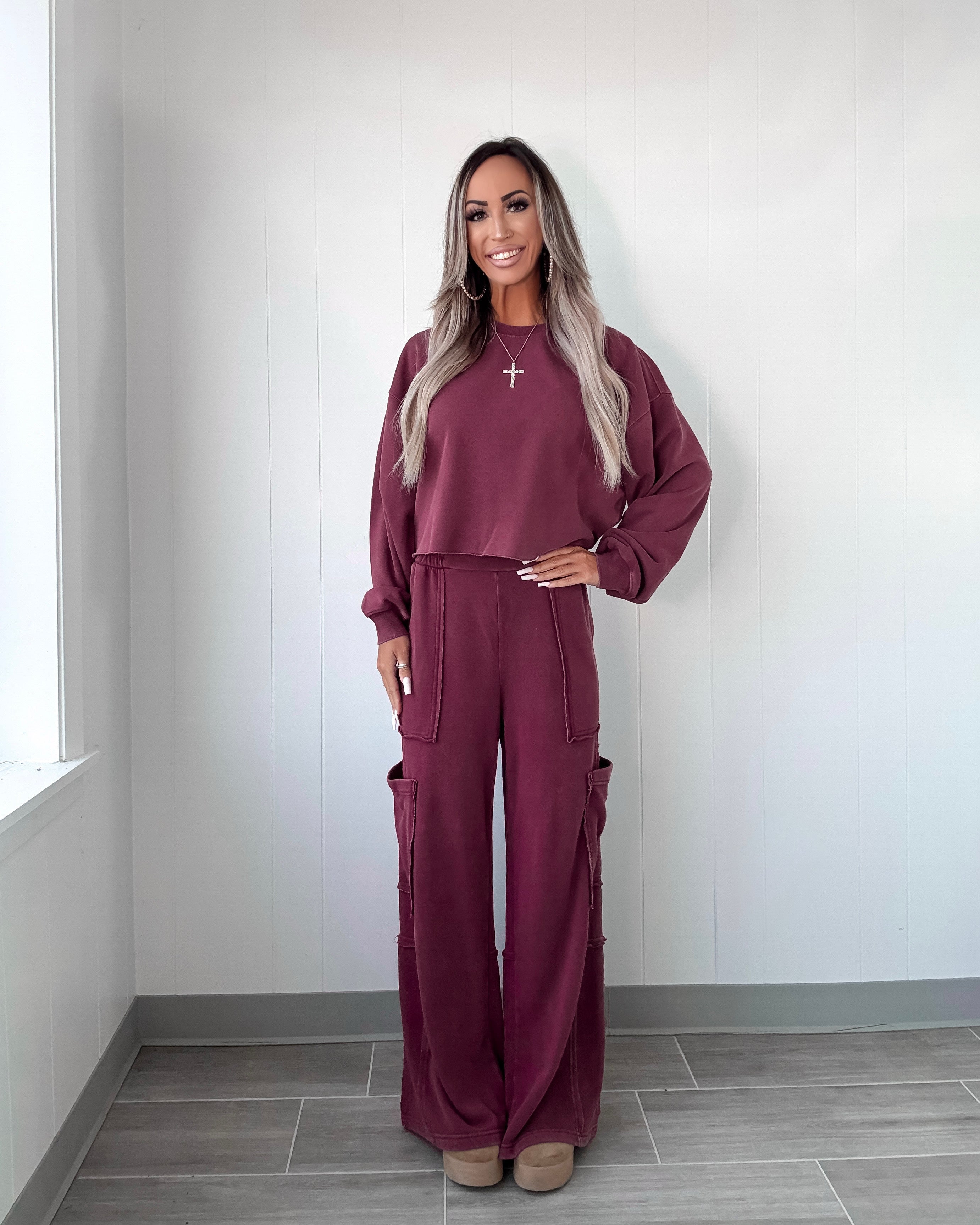 Perfect Lounge Cargo Sweatpants - Burgundy