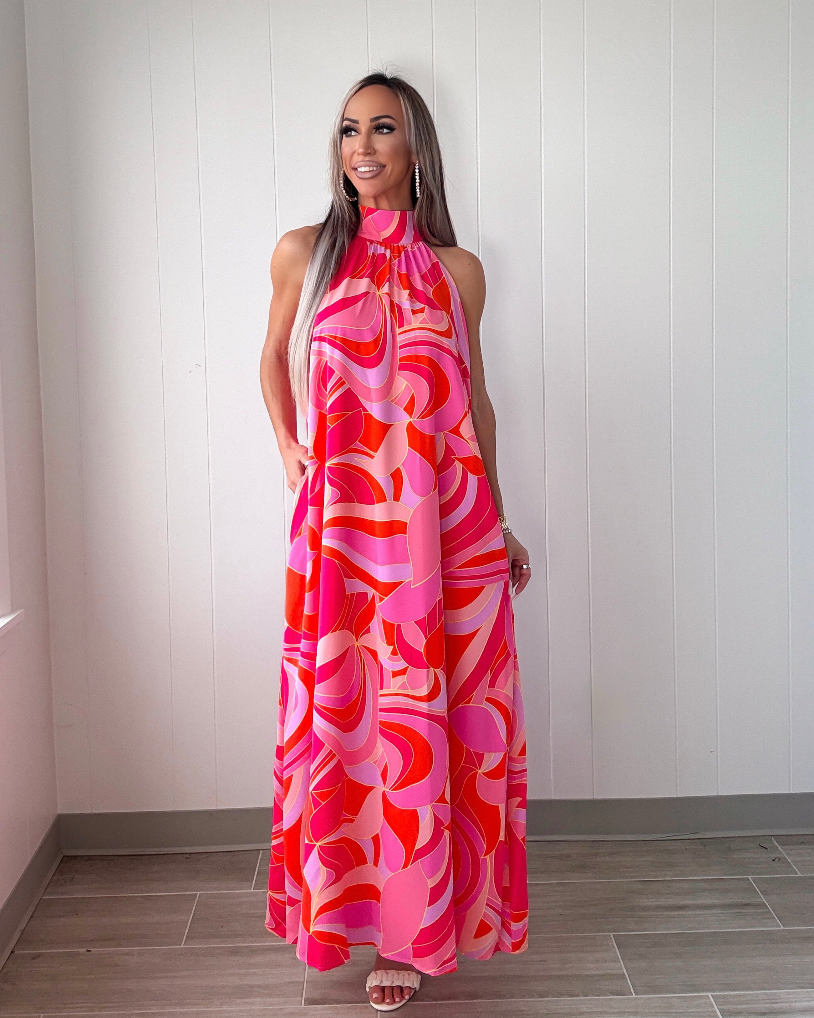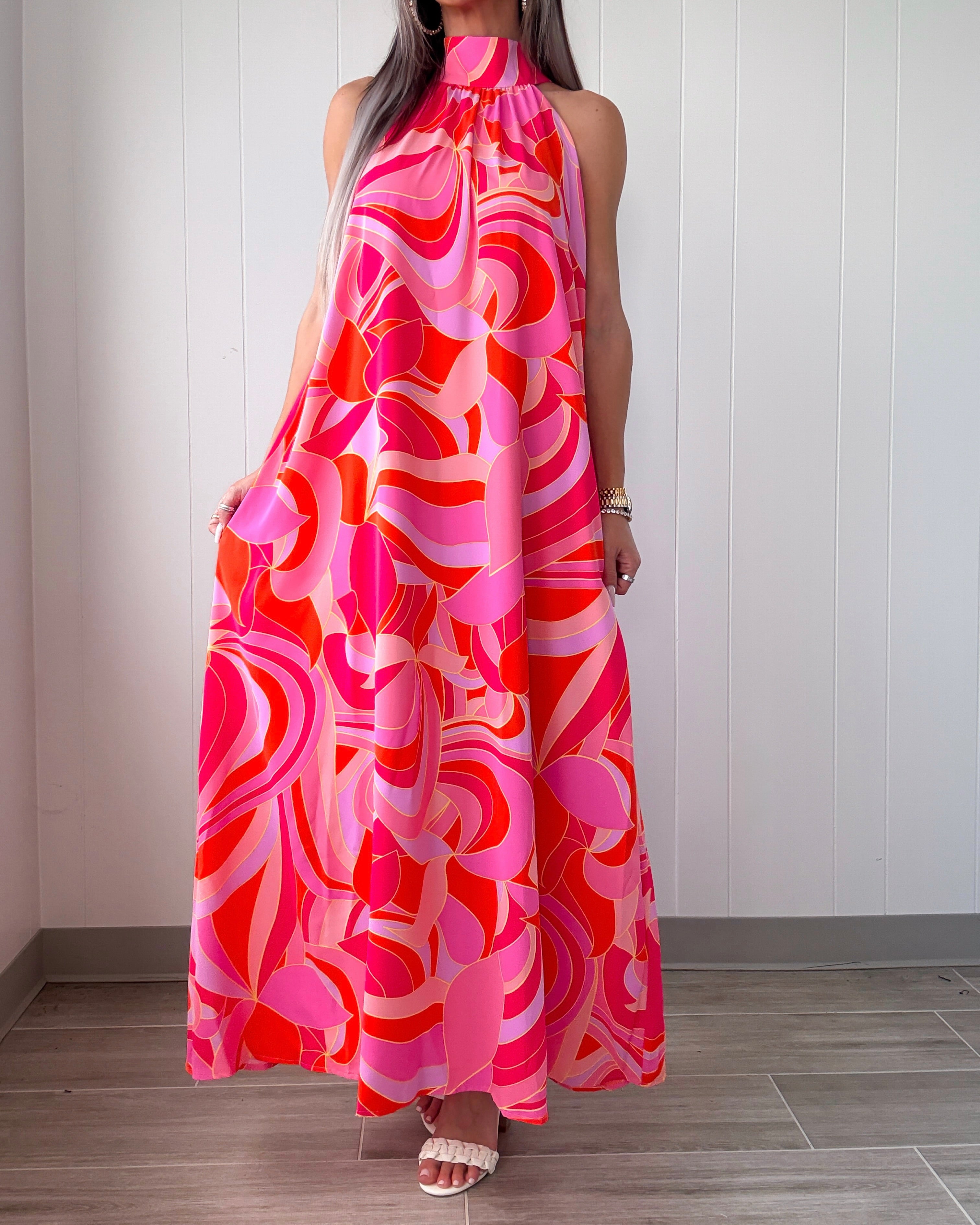 Finesse Halter Neck Open Back Maxi Dress - Tropical Fuchsia