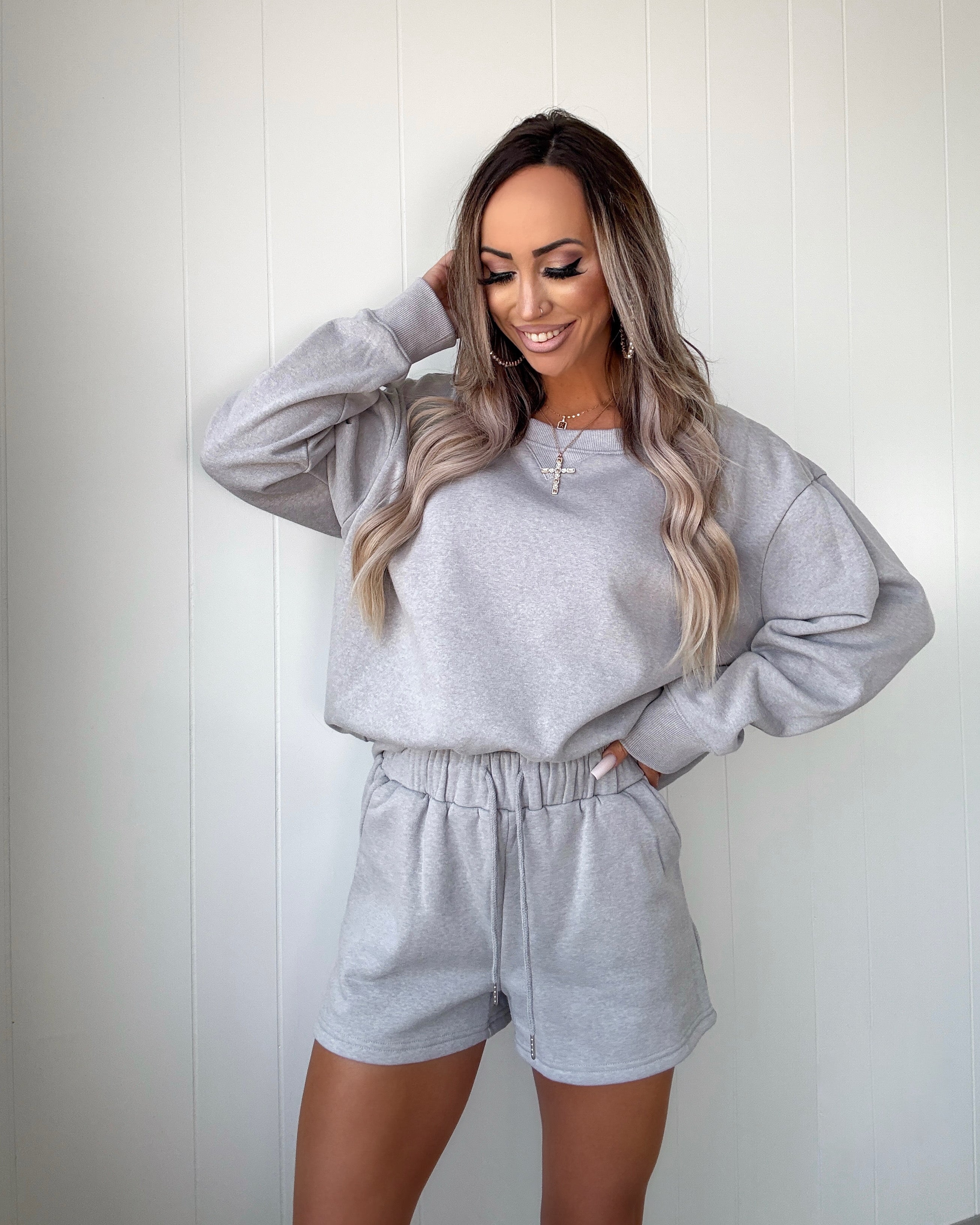 Comfy Cutie Shorts Set - Heather Grey