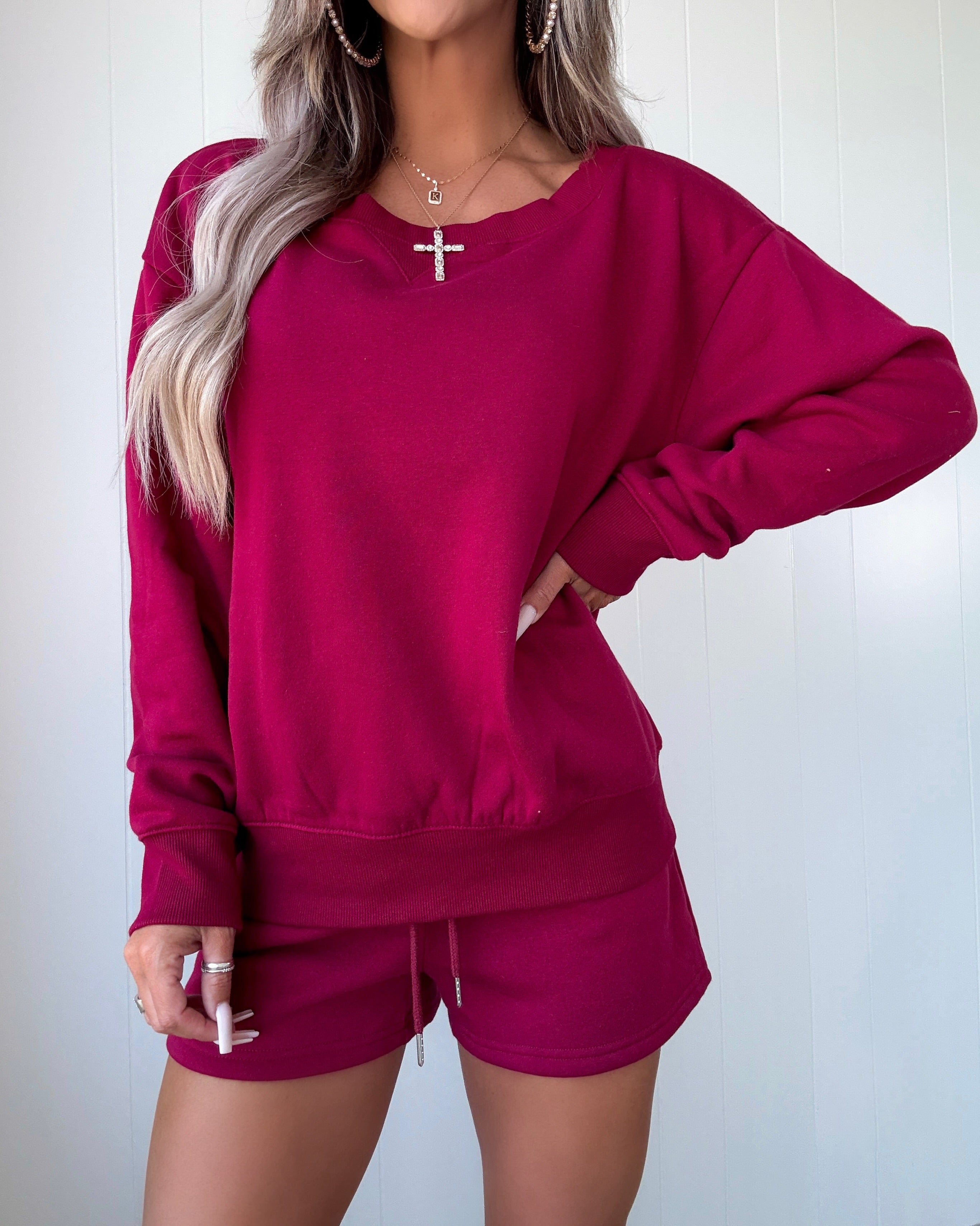 Comfy Cutie Shorts Set - Cabernet