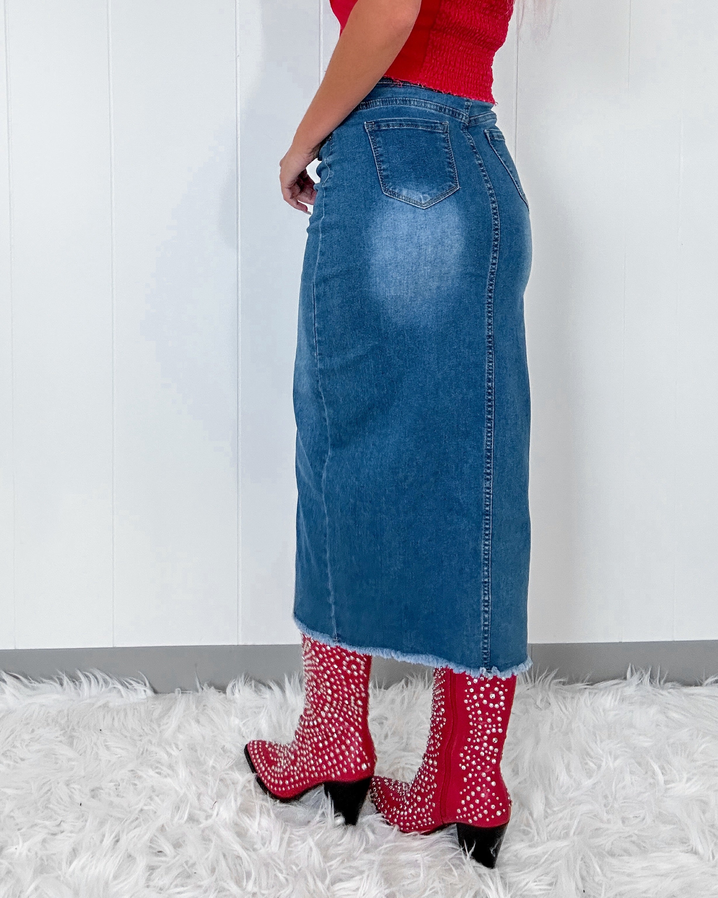 Time Stood Still Denim Slit Skirt - Medium Wash