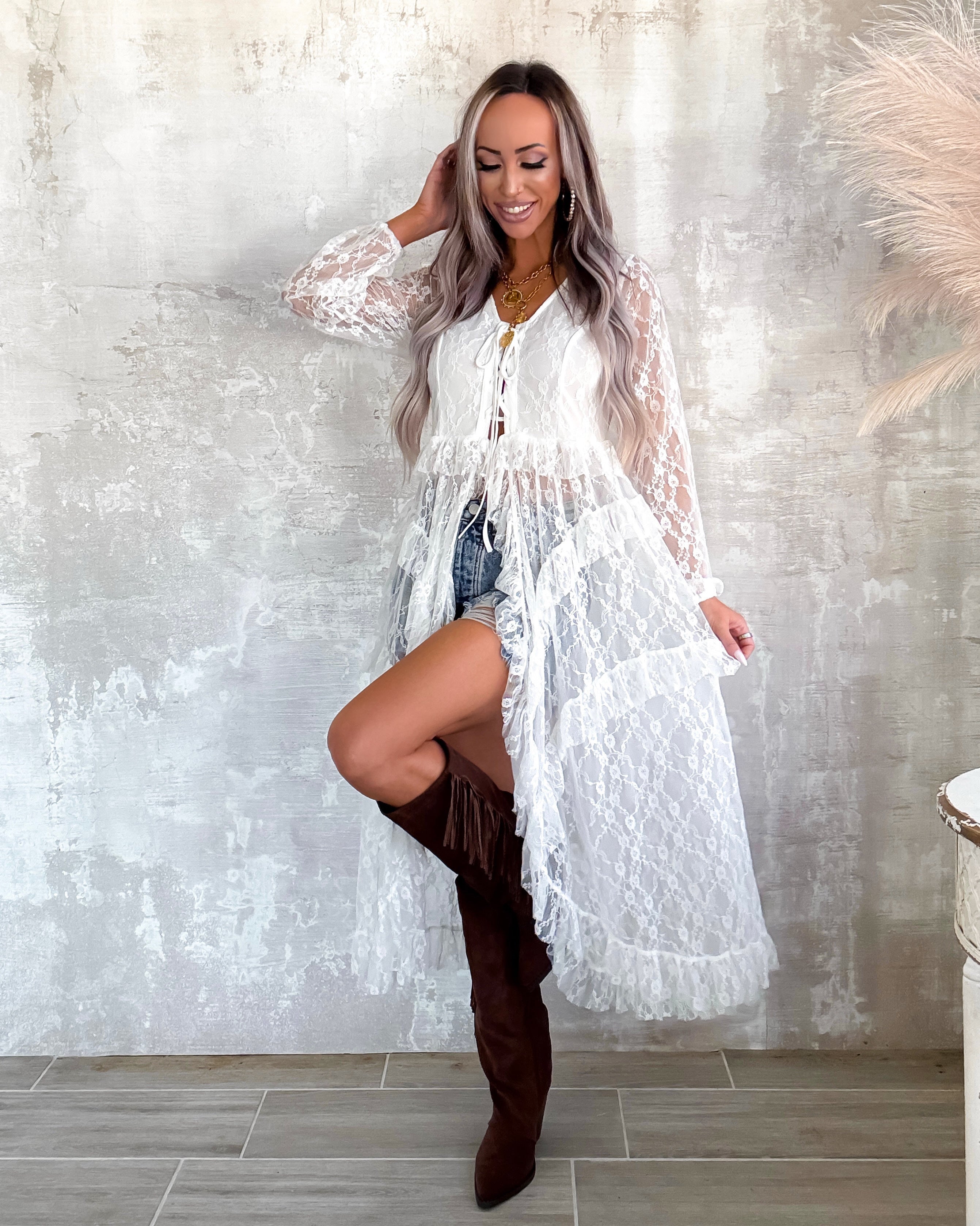 Refined Lace Layered Duster - Off White