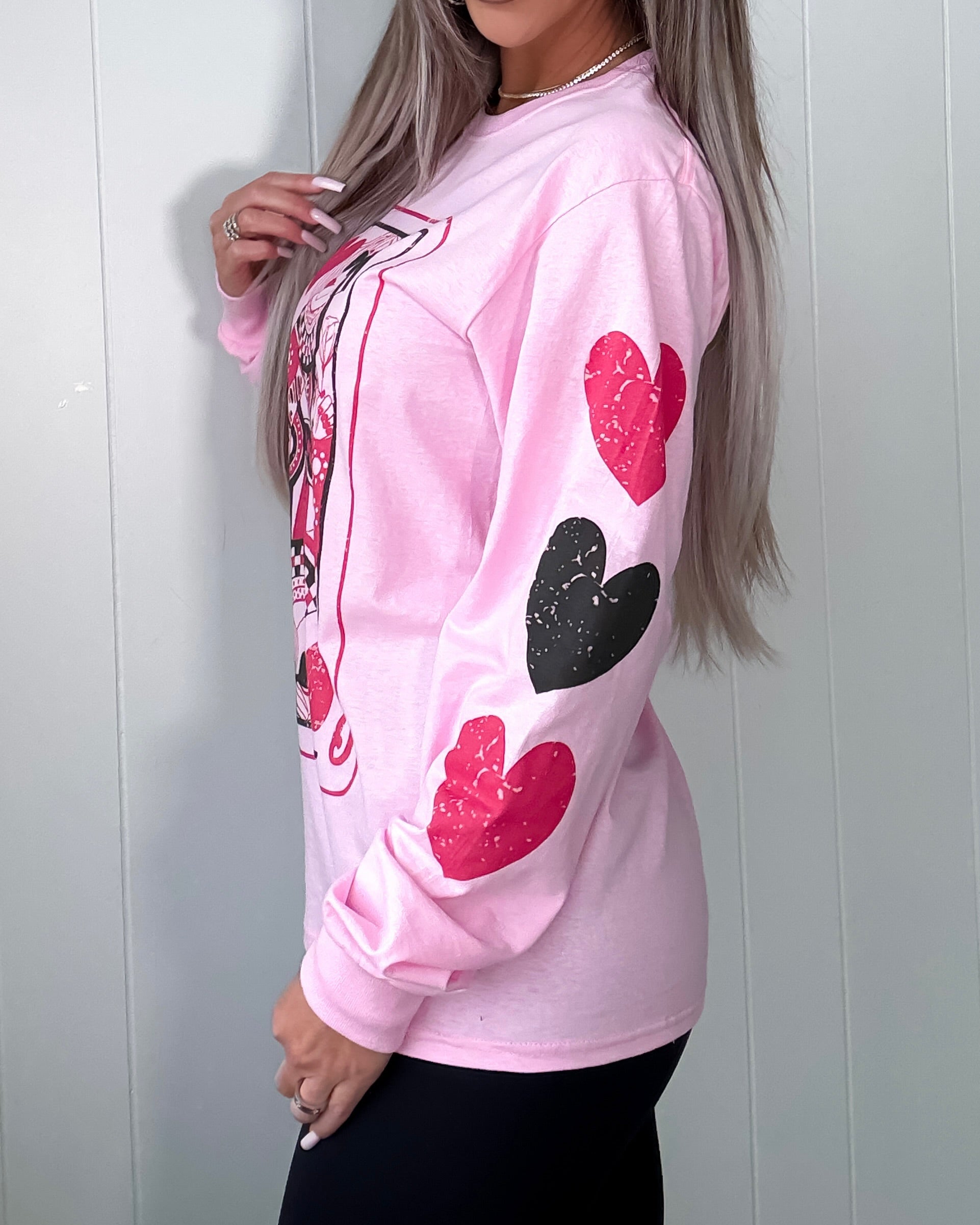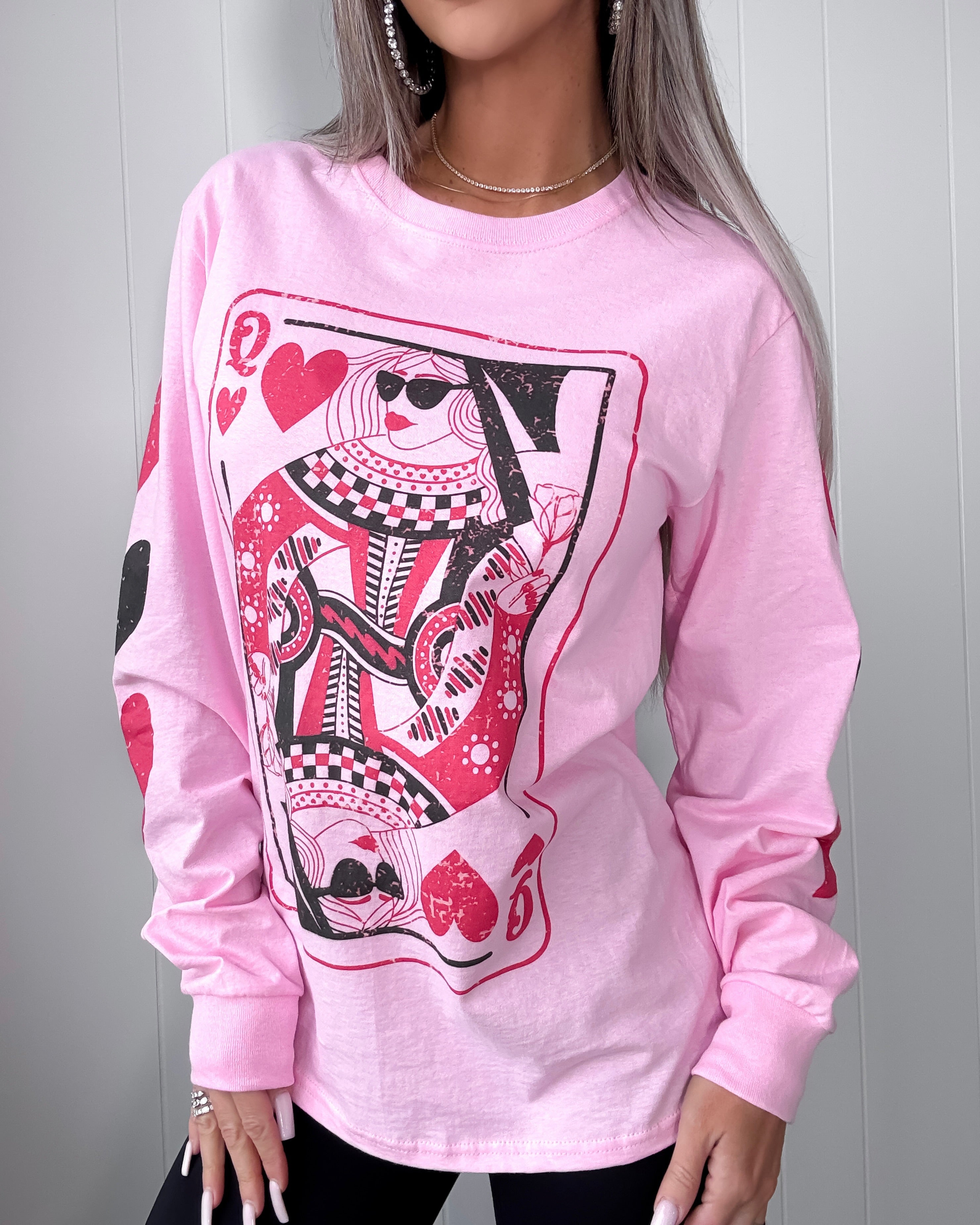 Queen Of Hearts Graphic Long Sleeve - Pink